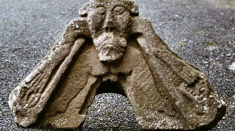 Great prominence is given to the hesd – the eyes and ears of the strange human figure are prominent but the body is not shown because of the opening in the arch stone. Arms and truncated legs seem to come out from the head as theere is no body.